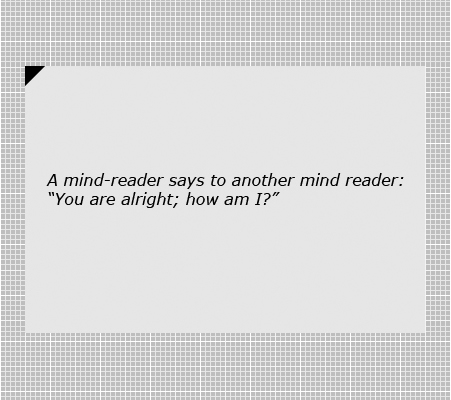 'A mind-reader says to another mind reader: "You are alright; how am I?"